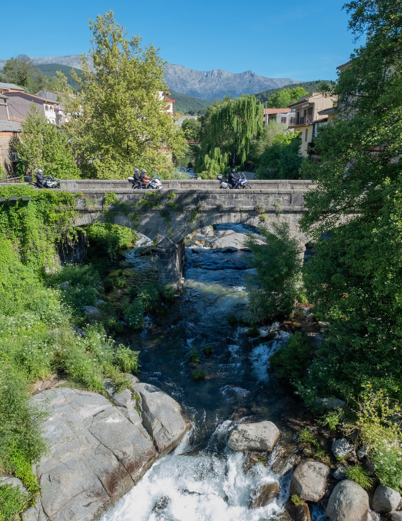 Leaving Avila, we continued west across beautiful twisting roads into the Sierra de Gredos mountains and a pine forest landscape dotted with boulders with snow lingering on the highest peaks seen in the distance.