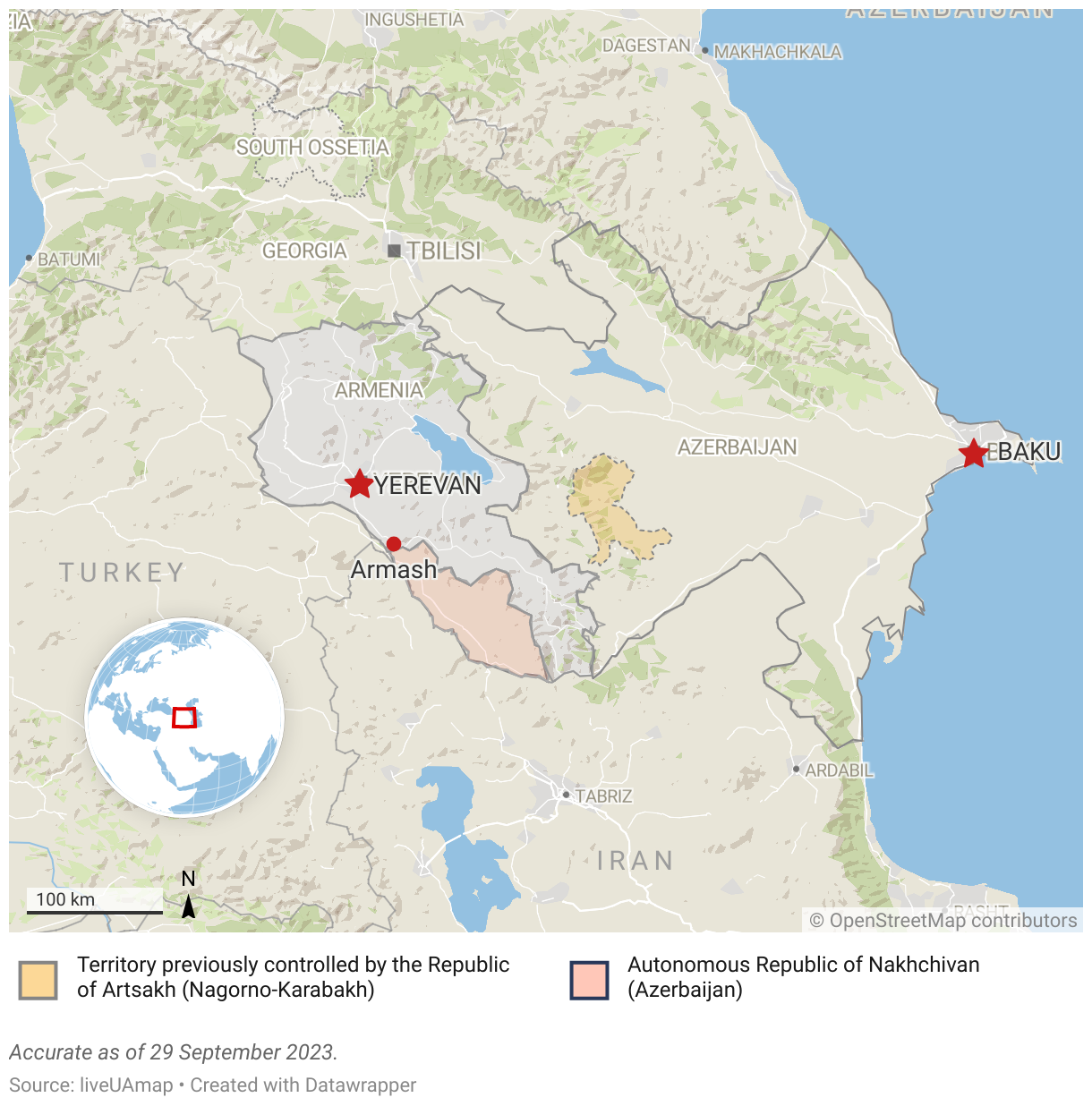 The Armenia-Azerbaijan conflict, which has been going on for decades, reached a turning point in September 2023. Baku launched a lightning offensive against Nagorno-Karabakh, an enclave of Azerbaijan historically peopled by Armenians. In less than 24 hours, Baku’s forces took total control of the territory. More than 100,000 inhabitants promptly fled to neighbouring Armenia.