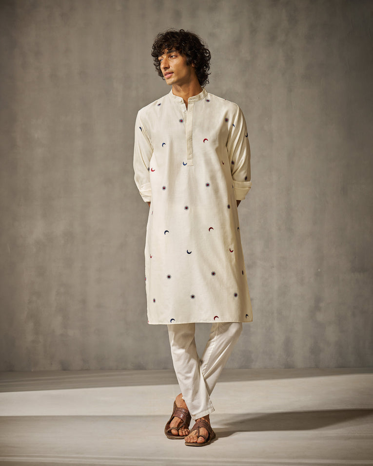 Nicobar Neckband Kurta with Ivory Embroidery