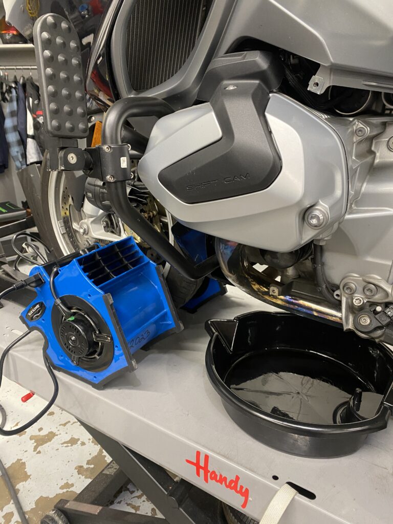 2015 R 1200 GS: BMW Motorrad’s engine oil change interval for my modern bike is 6,000 miles. I use a 5,000-mile interval because 5-10-15-20 is easier to remember than 6-12-18-24. This interval may be different for K bikes and the very newest boxers; refer to your owner’s manual. The oil change interval for the final drive is 12,000 miles, but it takes such a small amount of oil that I already have available that I just change it every 5,000 miles when I do the engine oil.