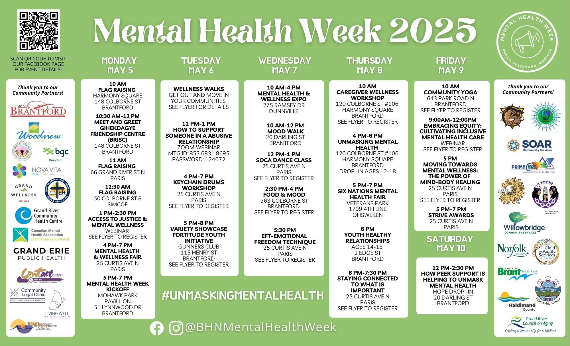 Other events include a Mental Health and Wellness Expo at 275 Ramsey Dr., Dunnville from 10 a.m. to 4 p.m. on May 7 and a Six Nations Mental Health Fair on May 8 from 5 p.m. to 7 p.m. at Veterans’ Park, 1799 4th Line, Ohsweken.